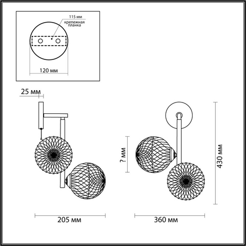 | Направление абажуров/плафонов | В стороны |
