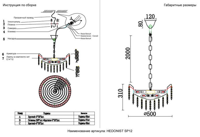 | Материал плафона/абажура | Хрусталь |