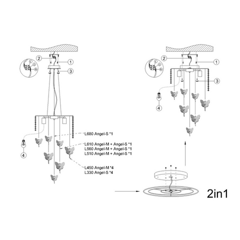 Направление абажуров/плафонов | Вниз |