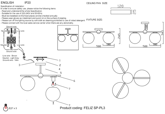 | Количество плафонов/абажуров | 3 |