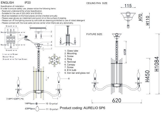 | Количество плафонов/абажуров | 6 |