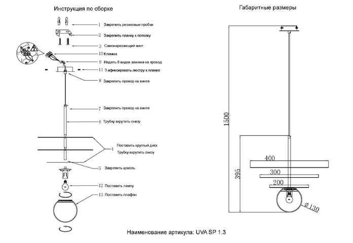 | Длина подвеса в мм | 1500 |